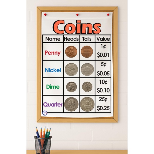 Kristie's Classroom U.S COIN VALUE Anchor Chart, Printed on FABRIC (23 X 35 INCHES)