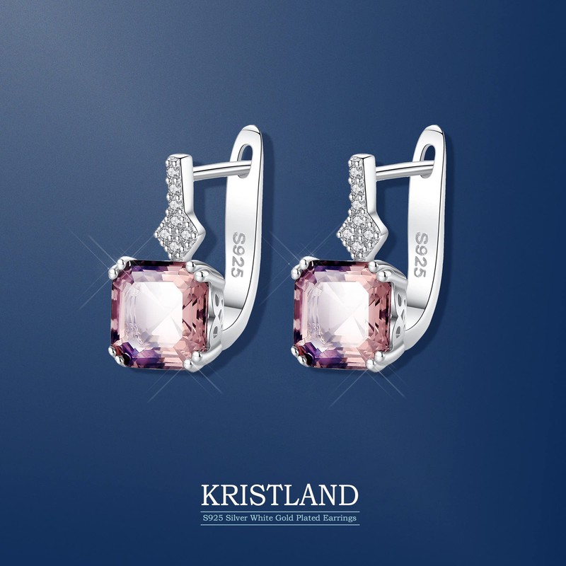 KristLand S925 Sterling Silver White Gold-Plated High Quality Cubic Zirconia Morganite Women's Hoop Earrings Birthday / Jewellery Gifts for Women Girls Mum Wife Girlfriends Rose Colour, Sterling