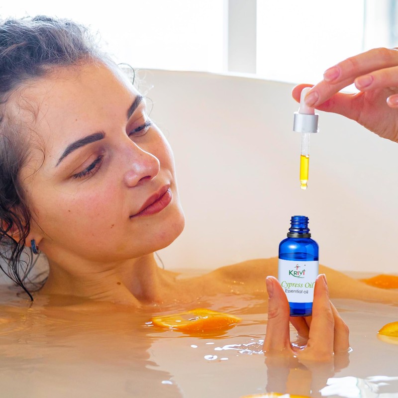 - Skin Nourishment: Krivi Herbals Cypress Oil is suitable for massage. It should always be diluted with suitable carrier oil before use since it is highly concentrated. There are many ways to use Cypress essential oil for the skin. Add a few drops of the oil to your creams, lotions, or bath products to enjoy the goodness of Cypress oil for your skin.