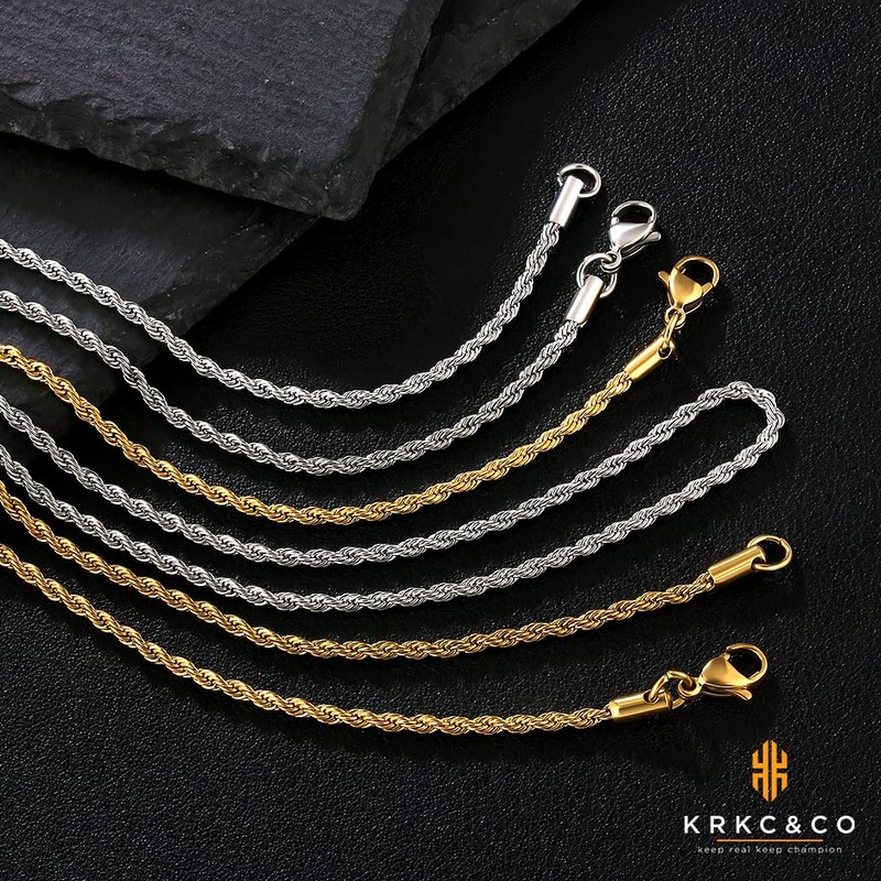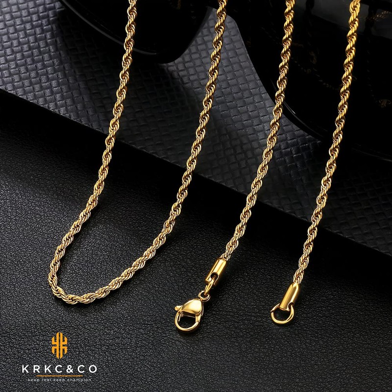 KRKC&CO 2.5 mm/6 mm Thin Rope Chain Stainless Steel 18 K Gold/White Gold Plated Plait Chain, Fine Gold Chain Silver Chain for Men Women, Unisex Rope Necklace, Birthday Gifts, 46-61 cm