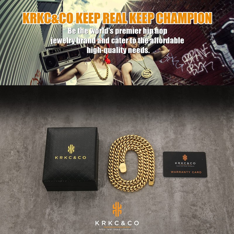 - KRKC&CO Customer Service Our KRKC&CO Hip Hop Men's Curb Chains are perfect for hip-hop performances, birthday parties, parties, and stand out from the crowd. Customer satisfaction is our top priority. We offer a 30-day return policy. Please contact us if you have any problems, we are always there for you