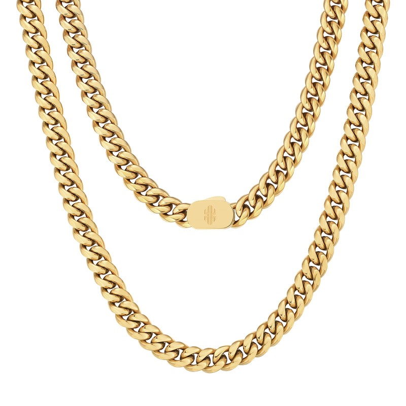 - High quality: classic wide 8 mm curb chain made of 316L stainless steel, double electronic PVD electroplating technology for a lasting shine: the surface is coated with 18K gold so that the colour does not fade easily
