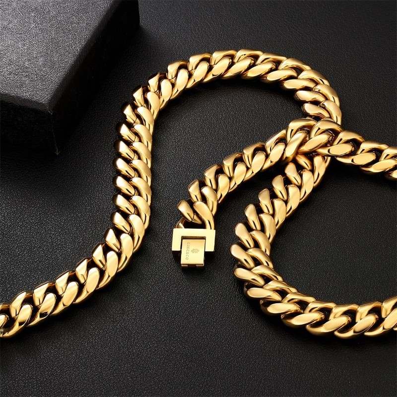 KRKC&CO Cuban Link Chain, 18K Gold Plated, Men's Gold Chain Men's Necklace Chains, 8mm 10mm 12mm Hip Pop Miami Cuban Chain Thick Curb Chains