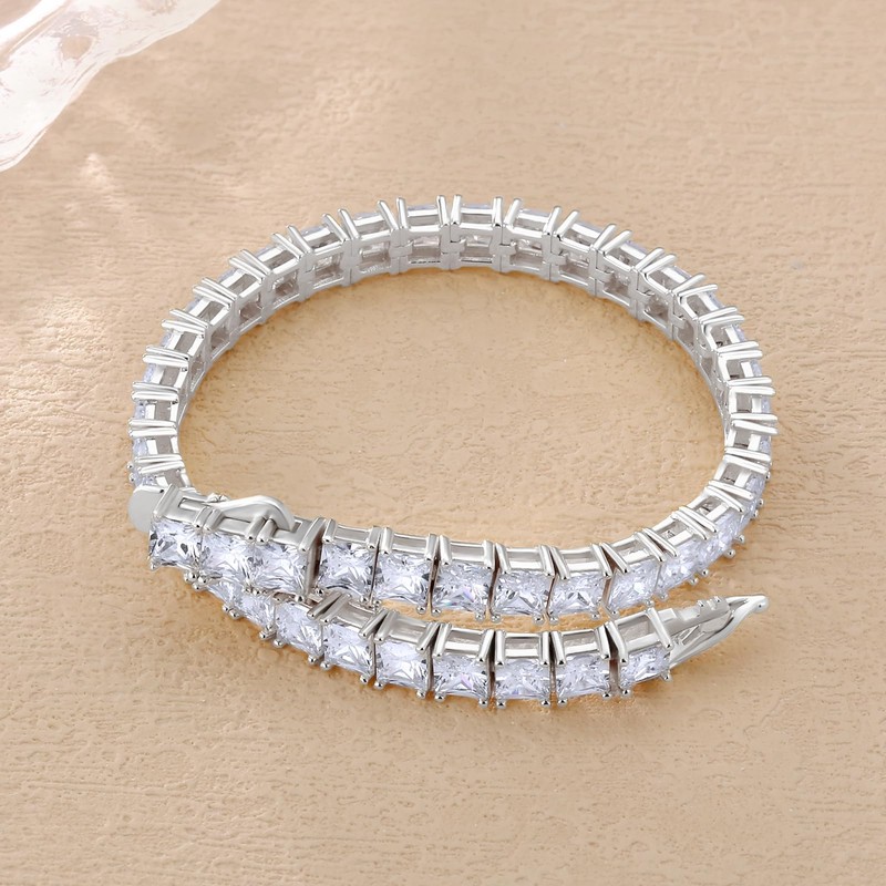 - (Gorgeous on your hands) This eternity tennis bracelet features princess cut cubic zirconia stones. Compared to other round cuts, the square shaped CZ diamonds are larger, making them outstanding in presence. The princess cut CZ diamond gives off a dignified and beautiful shine