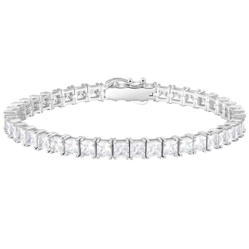 - (Gorgeous on your hands) This eternity tennis bracelet features princess cut cubic zirconia stones. Compared to other round cuts, the square shaped CZ diamonds are larger, making them outstanding in presence. The princess cut CZ diamond gives off a dignified and beautiful shine