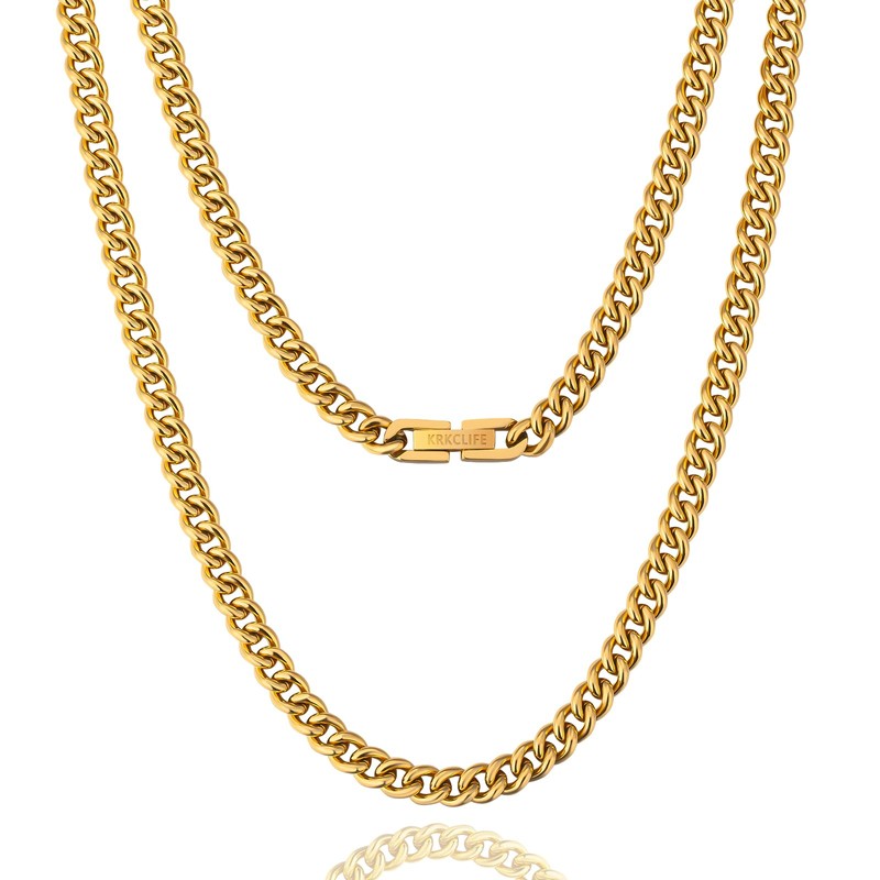 • 【Satisfy all your needs】KRKCLIFE offers you the fantastic womens mens chain necklace in different sizes to fully satisfy your needs: wear the cuban chain alone or combined with other chains: Width: 5/7/9MM, Length: 18"/20"/22"/24", please choose the right size according to your preference