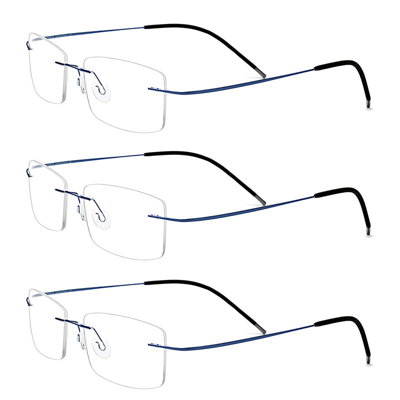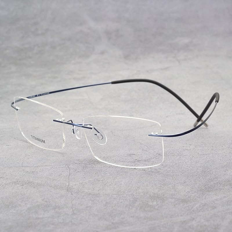 - Overall, these glasses feature rectangular PC lenses connected to flexible titanium temples through an innovative screwless rimless frame design. Achieving optimal lightness, visibility and a perfect fit, they provide comfort with subtle modern style in a rainbow of temple hue options to match your personality.