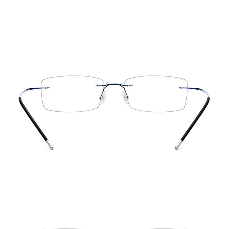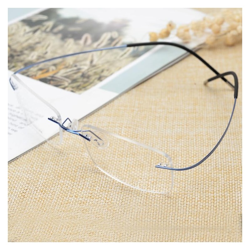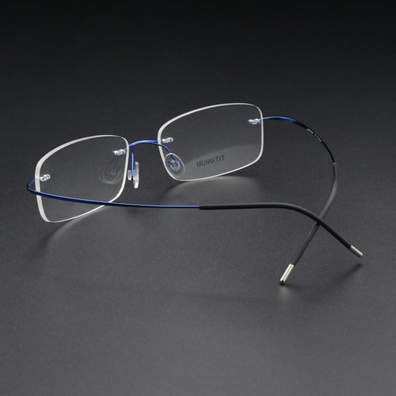 krlanhx Rimless Titanium Alloy Men Eyeglasses Frame Clear Rectangle Ultralight (Blue)