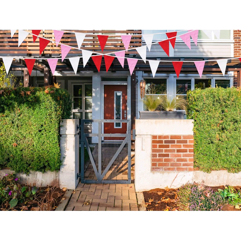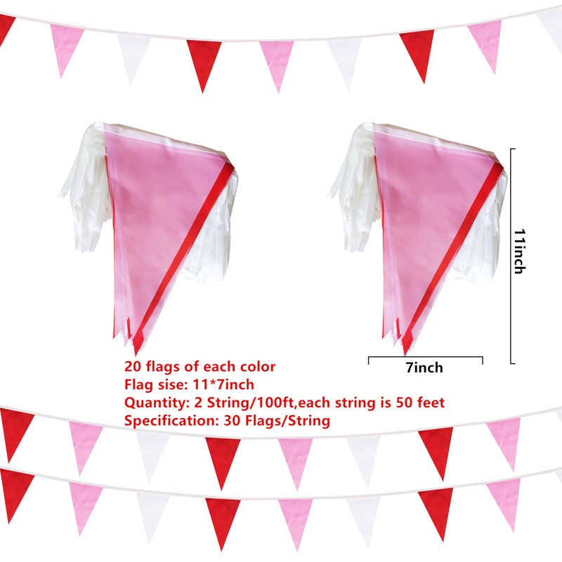 Krmkot 100 Ft Red Pink and White Pennant Banner String Flags, 60 Flags, Polyester, Rectangular, Red Pink White