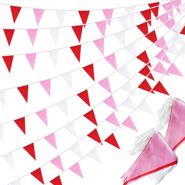 Krmkot 100 Ft Red Pink and White Pennant Banner String Flags, 60 Flags, Polyester, Rectangular, Red Pink White