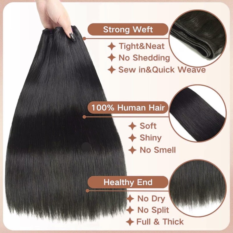 - Human Hair Bundles Advantages: Our bundles feature a double machine weft, offering softness, silkiness, full density, and thick ends. The hair is bouncy, shiny, and highly elastic, with one-direction cuticles for no split ends, tangle-free use, and minimal shedding. It is 100% human hair—free from chemicals, no odors, no animal hair, and no lice.