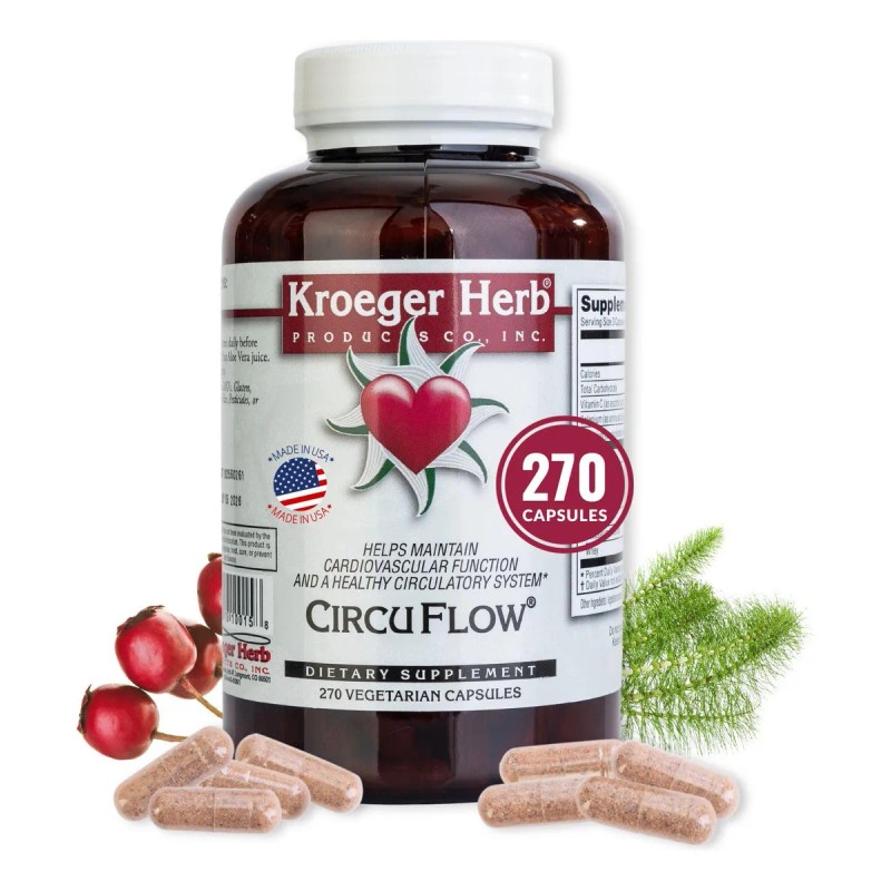 Kroeger Herb Circu Flow 270 cápsulas México, suplemento herbal para circulación, salud cardiovascular natural, cápsulas para presión arterial y venas, Circu Flow circulación sanguínea, suplemento de corazón sin químicos, fórmula herbolaria para el corazón.