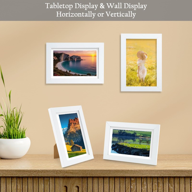 - Picture Frames Set: The set of picture frames contains 4pcs white color frames of the same size, each frame fits perfectly for 4'' x 6'' picture. You can use it to display your photos and hanging in your bedroom, living room, hallway or dining room
