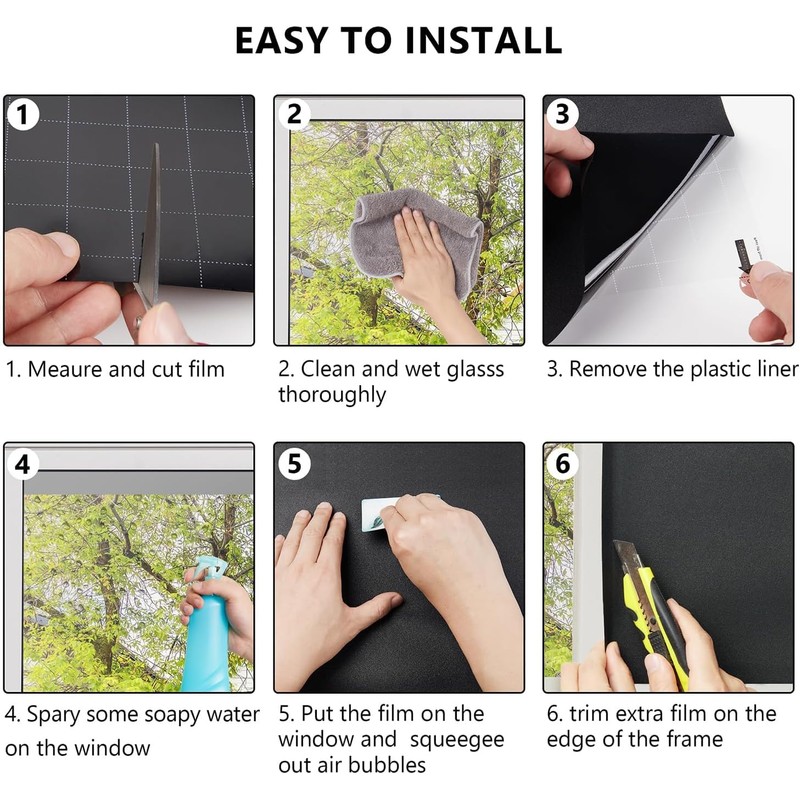 - EXTRA GIFT TOOL KITS - Each roll of blackout window clings comes with all the tools you need to install: spray bottle, utility knife, scraper and soft ruler to save money and time and make installation easier.