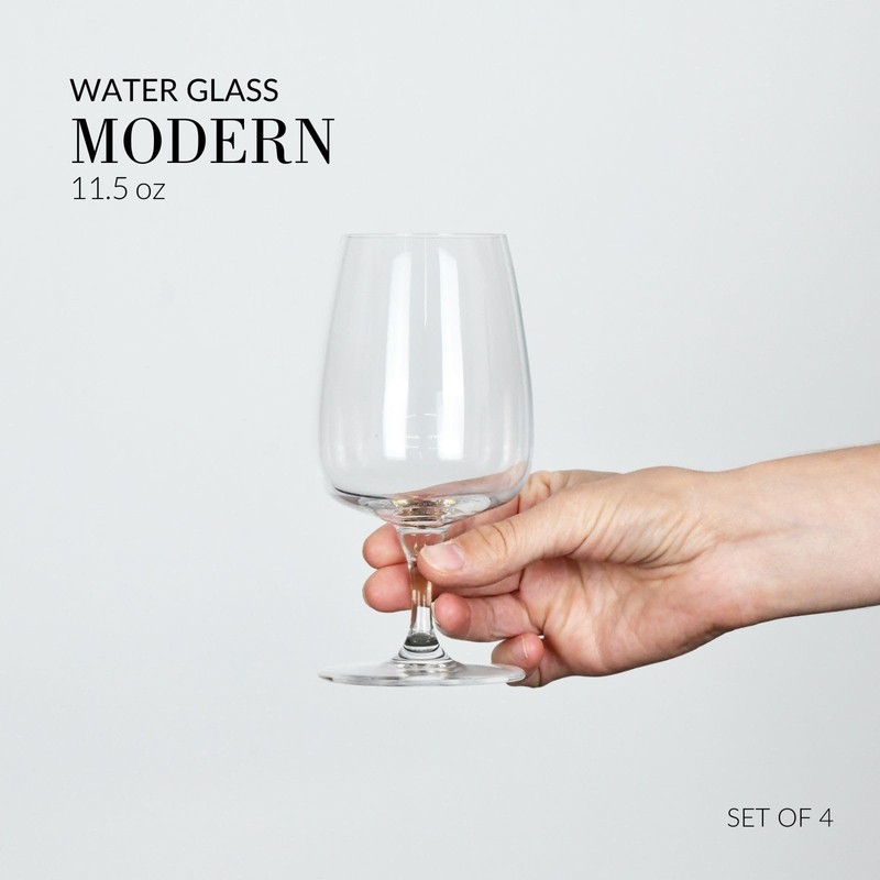 - FUNCTIONAL DESIGN - Transform ordinary meals into extraordinary moments with this set of 4 stemmed water glasses from the Modern collection. Whether it's a casual family dinner, an elegant gathering or a formal celebration, the glasses will add charm to any occasion