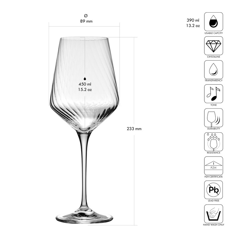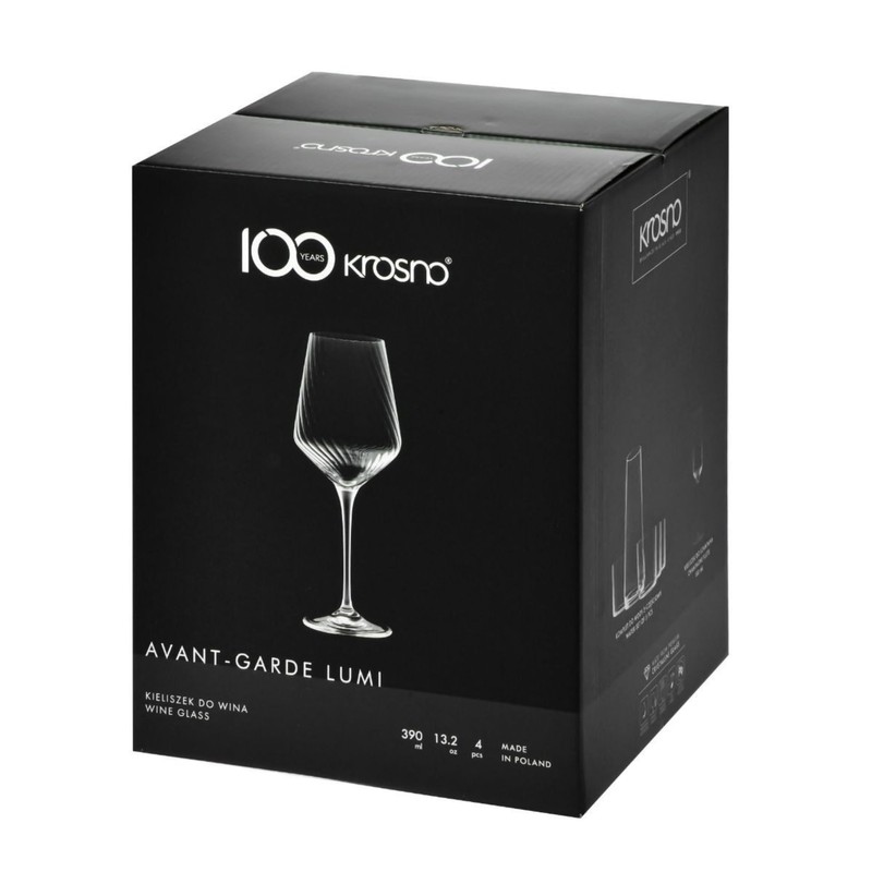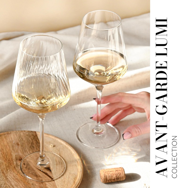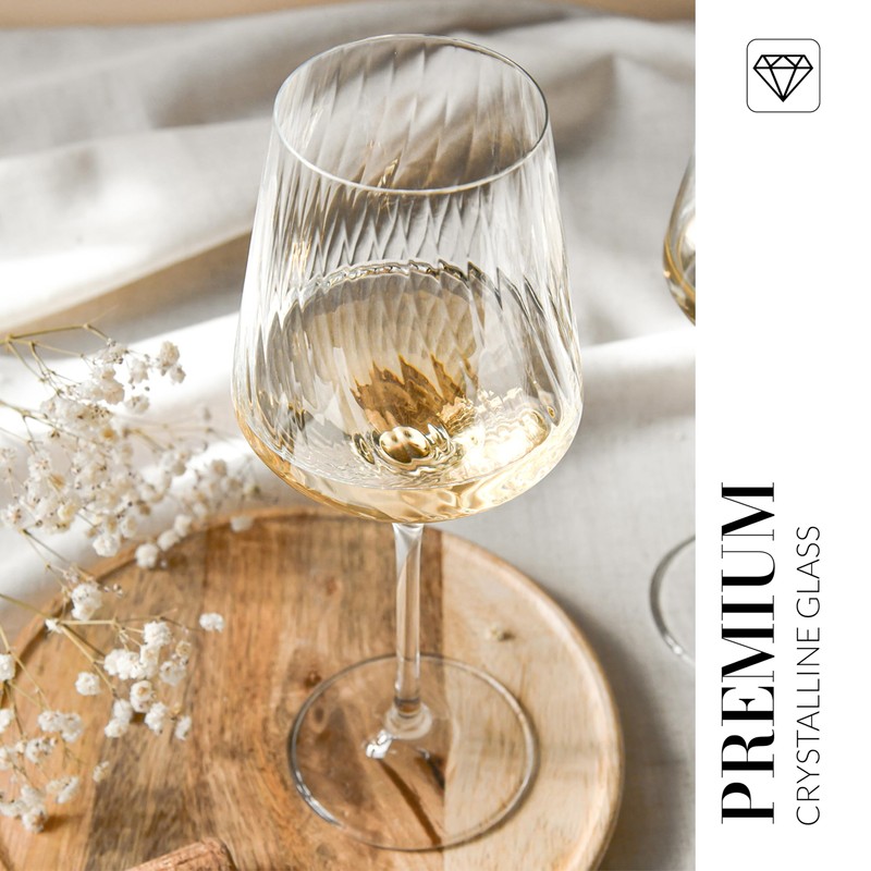 Krosno Wine Glasses with Textured Optic Effect, Set of 4, 4 x 15,21 Fl.OZ, Avant-Garde Lumi Collection, Durable Crystalline Glass, Unique Design, Dishwasher Safe, Made in Europe