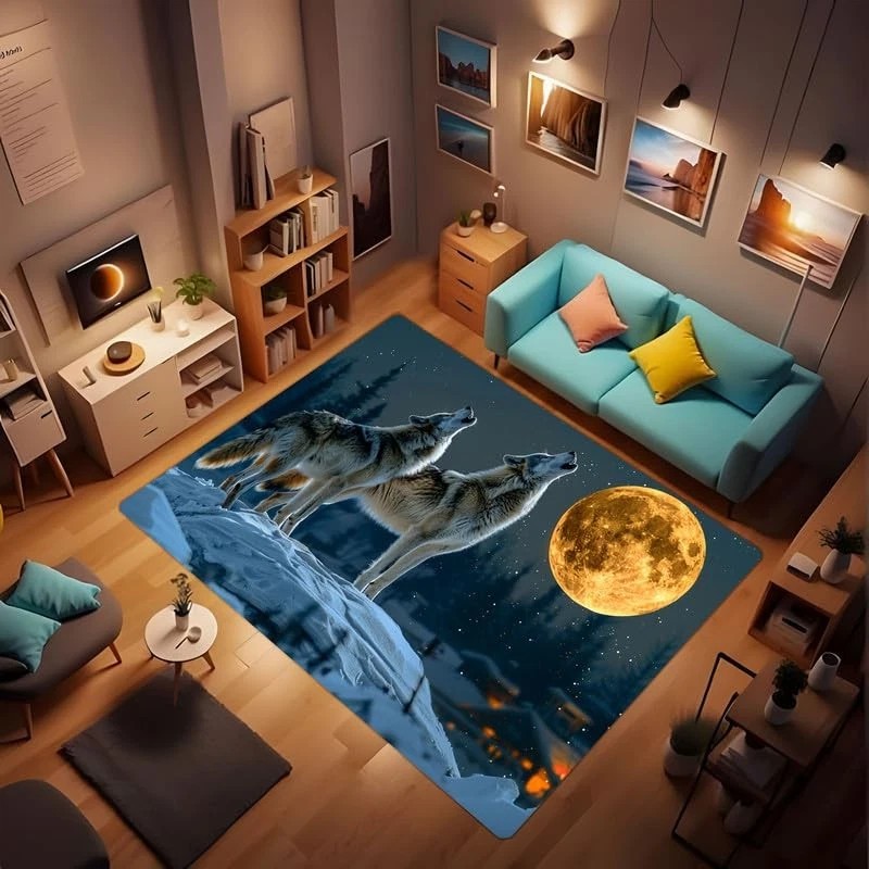 This Wolf Howls Under the Moon carpet is suitable for living rooms, bedrooms, study rooms, restaurants and other places, making your home more artistic and fashionable.