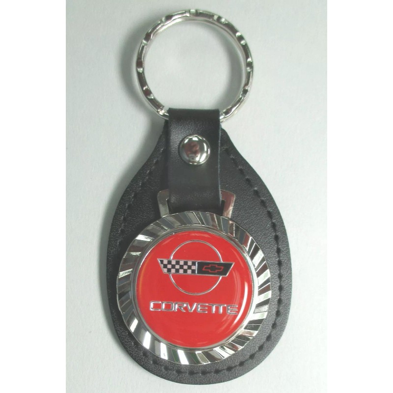 KRS Red C4 CORVETTE Royal Classic Chrome #82D2 Leather Key Ring 1992 1993 1994 1995