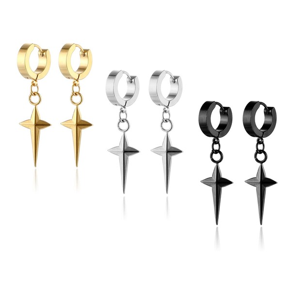 Krstudent 3 Pairs Titanium Steel Hoop Dangle Earrings for Men Women, Huggie Loop Hypoallergenic Cartilage Piercing Pendant Earrings Set