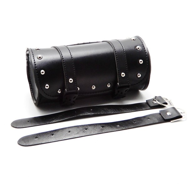 Motorcycle Saddle Bag PU Leather Tool Roll Saddle Motor Side Luggage Travel Tool Tail Bag with 2 Mounting Straps Black