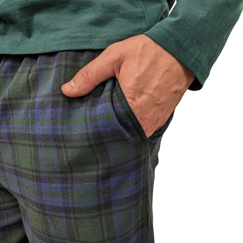 KRUXADER Mens Pyjamas Set|100% Cotton PJ Set|Elasticated Pants With Drawstring & Long Sleeve Top(Pendragon Forest Green, XL)