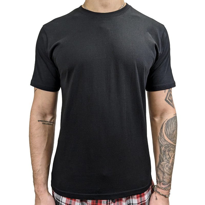 KRUXADER Mens Pyjamas Set | 100% Cotton PJs | With Pants & Short Sleeve Top | Elastic Waistband and Drawstring (CAMELOT BLACK, L)