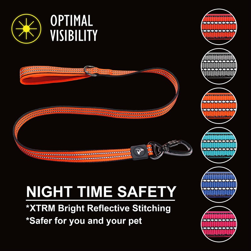 - NIGHT TIME SAFETY - This premium leash for dogs is made from 100% high quality nylon, and the lead is finished with a double layer of 2mm bright reflective stitching that keeps you and your pup easily visible when on your late night or early morning walks.
