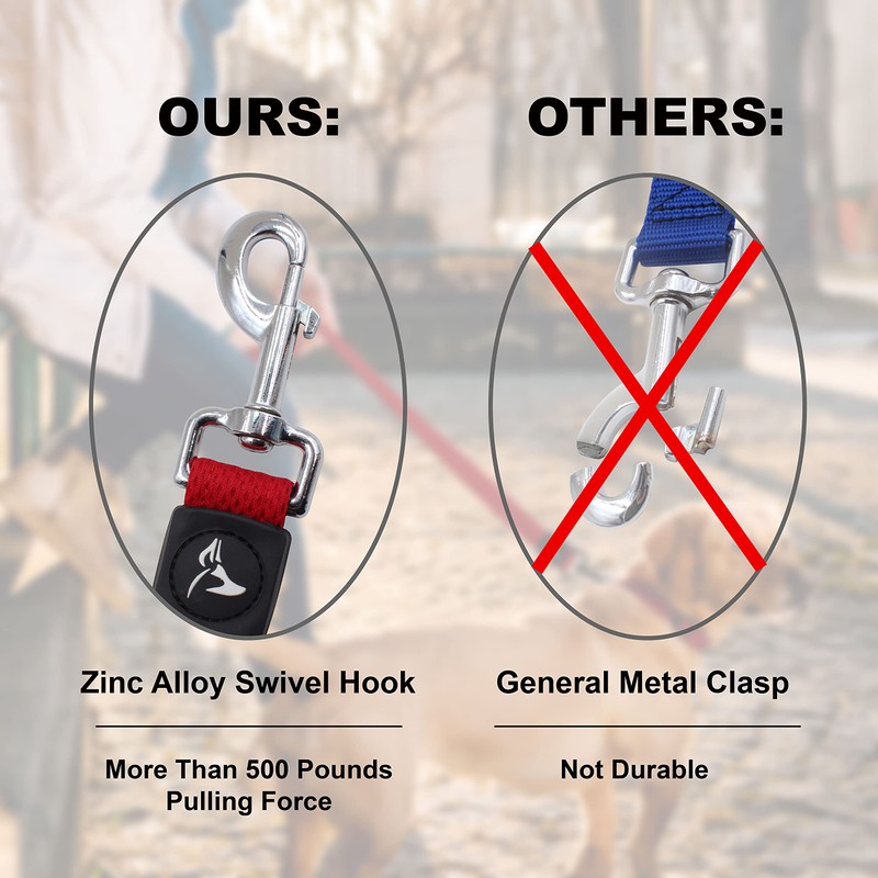 - SWIVEL HOOK PREVENTS TANGLES - This 5ft dog leash has a tangle-free design, fitted with a 360° heavy-duty zinc alloy swivel hook that prevents the leash from tangling. It increases safety and provides peace of mind for a pleasant walking experience.