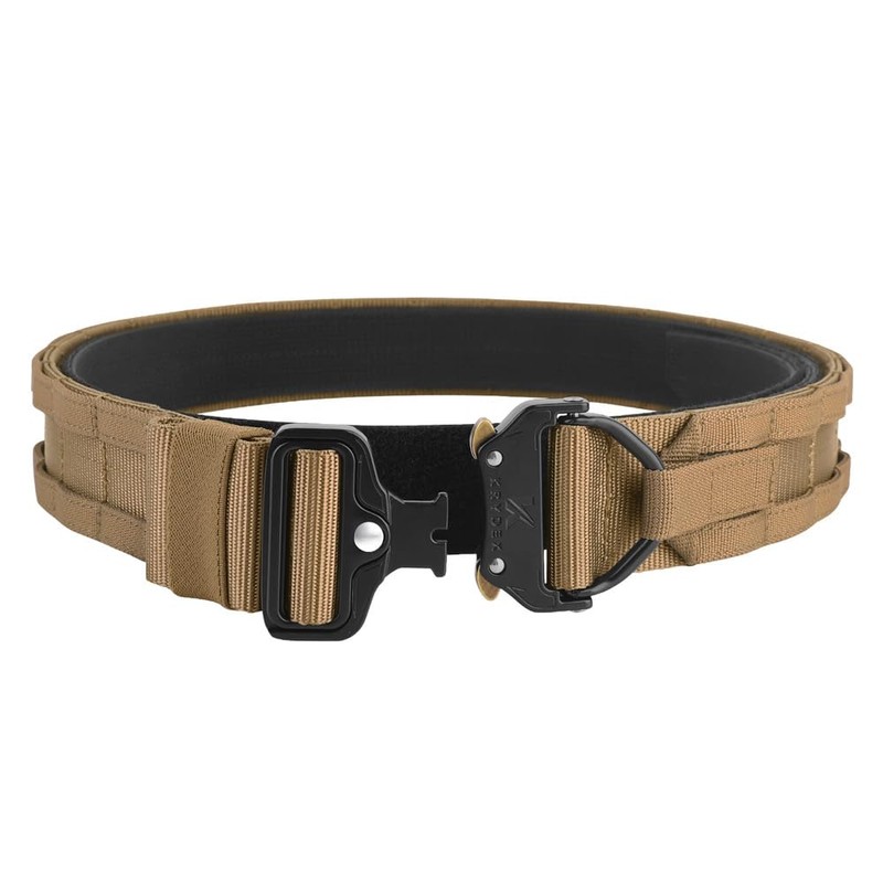 - Heavy duty 1.75 " double stiffened MOLLE outer belt attaches to the outside of inner belt,quick release buckle and hook backing allows for maximum security whole still permitting rapid donning & doffing. MOLLE webbing runs around of outer belt for equipping pouches, holsters, and other belt accessories.