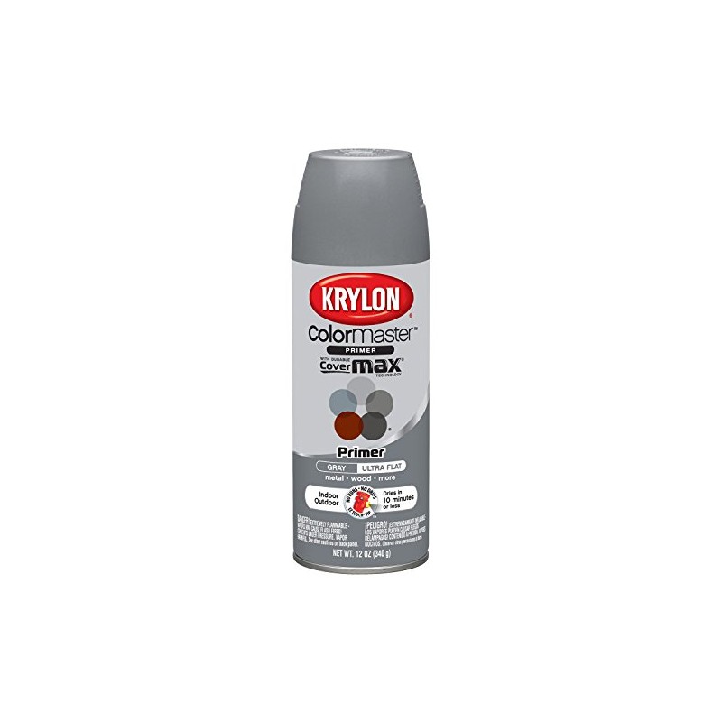 Krylon K05131807 ColorMaster Paint + Primer, Ultra Flat Primer, Gray, 12 oz.