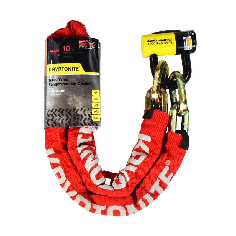 Kryptonite New York FAHGETTABOUDIT 1415 14mm 15 LBS Red Chain & New York Lock 15mm Disc Lock