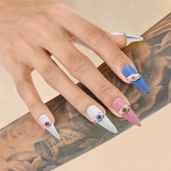 Krystil Artistic Press On Nails Creative Hand-Painted Designs with Exquisite Artwork Unique Manicure Experience – Perfect for Showcasing Your Individuality (Devil's eye, 5 Sizes)