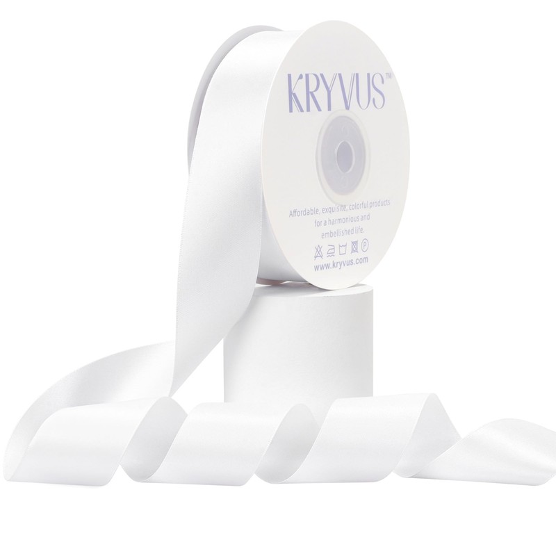 KRYVUS Double Faced 1-1/2" White Polyester Satin Ribbon Continuous 50 Yards Use for Bows Bouquet,Christmas Gift Wrapping,Floral Arrangement