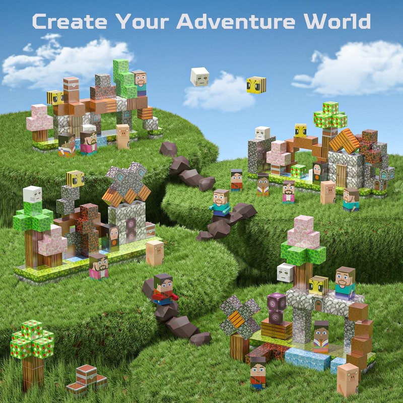 • Imaginations & Creativity Builder: Follow the heroes' footsteps and embark on a treasure hunt with magnetic building blocks! Spark the imagination of children with themes of lava, portal and forest. These magnet blocks offer immersive play, allowing kids to construct, demolish, and rebuild as they please.