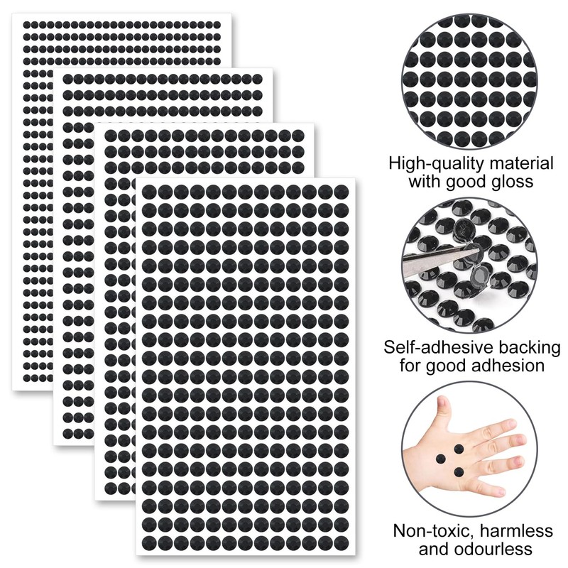Kryzulax 1792Pcs Gem Stickers,4 Sheets Rhinestone Stickers,Sheets Acrylic Crystal Gems Stickers,for DIY Craft Jewel Clothes Makeup Festival Carnival Decro(3/4/5/6mm)-Black