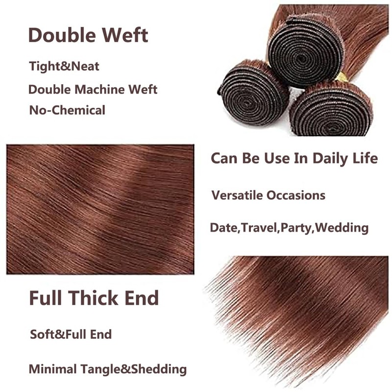- Extension human hair durable and long-lasting: #33 red brown double weft ensures even thickness from roots to ends, soft and natural texture, tight and neat, bouncy and glossy, with proper care, maintains long-lasting quality.