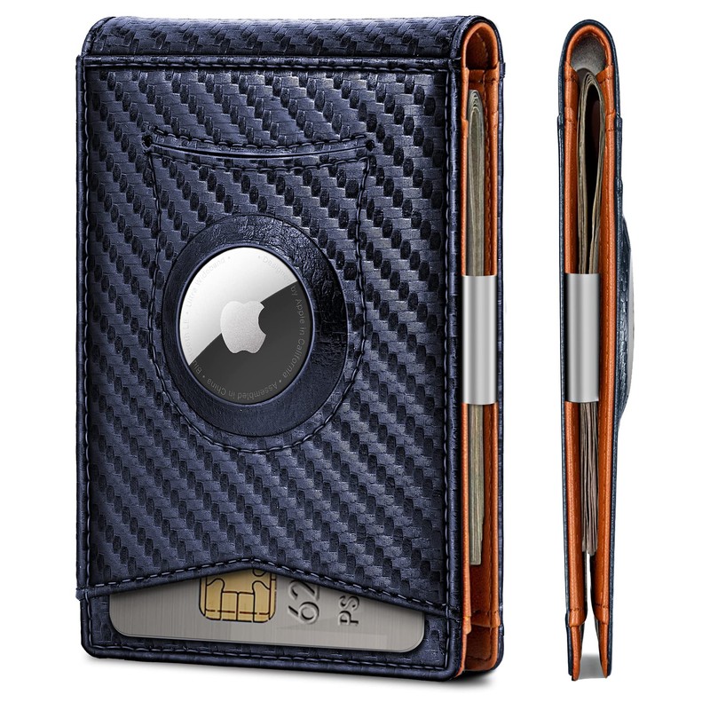 KS Mens Wallet Gift Airtag or Standard Use,Slim Front Pocket Leather Wallet Money Clip 11 cards RFID Blocking