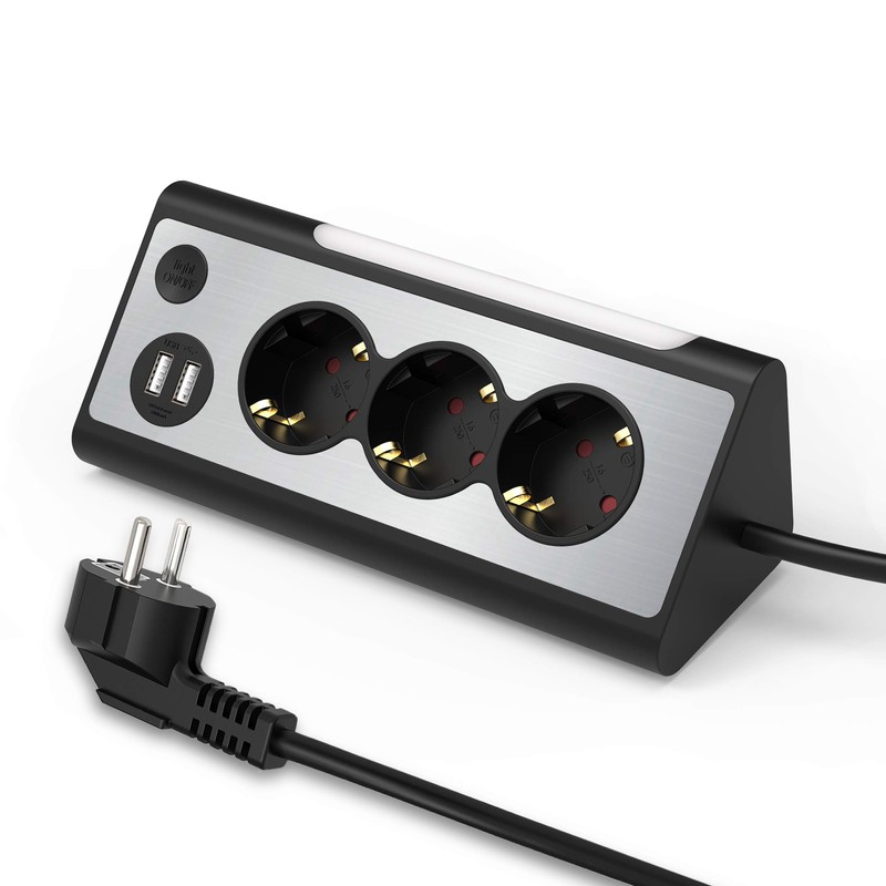 • Multiple socket with USB: this table socket offers you 5 ways to connect your devices. Use 2 USB charging ports and 3 mains ports for your electrical devices including mobile phones, tablets, or laptops at the same time. Ideal for use in kitchens, home offices, hotels, meeting rooms, offices etc.