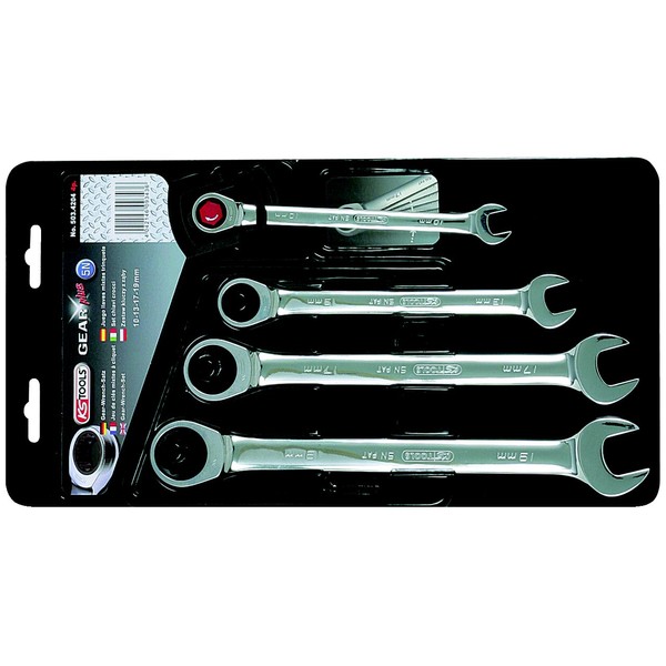 KS Tools 503.4204 GEAR+ Comb Ratchet Spanner Set, 4 Pieces