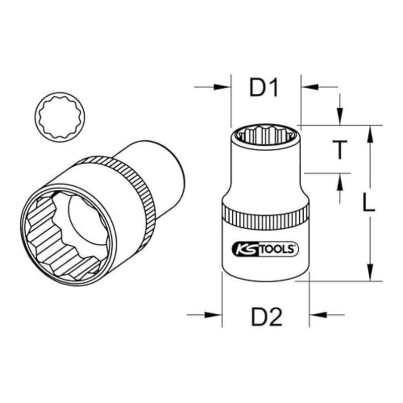 KS Tools 911.3998 3/8" 12 Point socket, 24mm