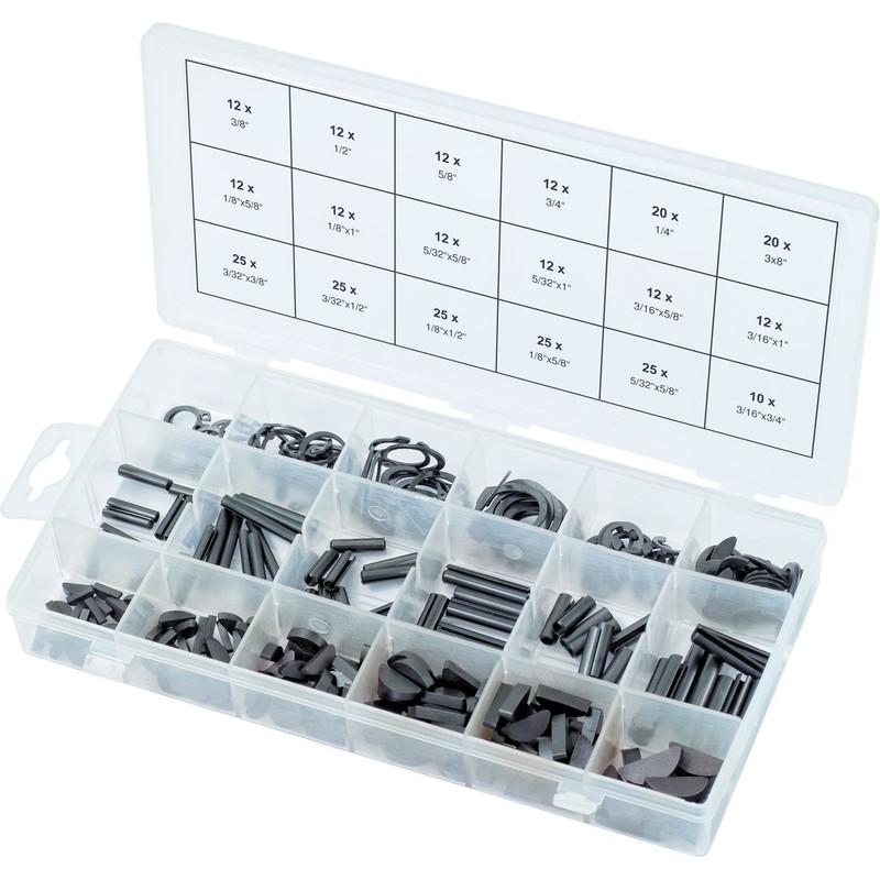 KS TOOLS Roll pins/Seeger Feather Keys/E-Ring circlips Assortment, 1/8" x5/8"-3/16"x 1", 295 pcs, Clear