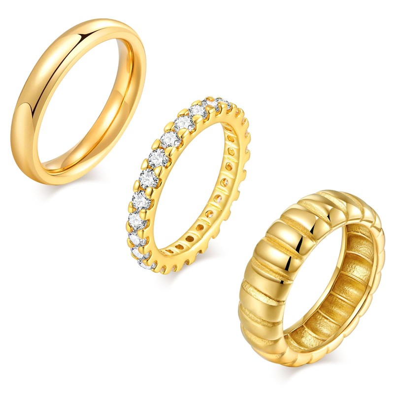 - Rings Material: Made from premium 14K gold-plated stainless steel, these rings offer lasting shine and durability.The rings are highly polished for a smooth finish and long-lasting color. They are lightweight, comfortable, and won’t cause discomfort even when worn all day