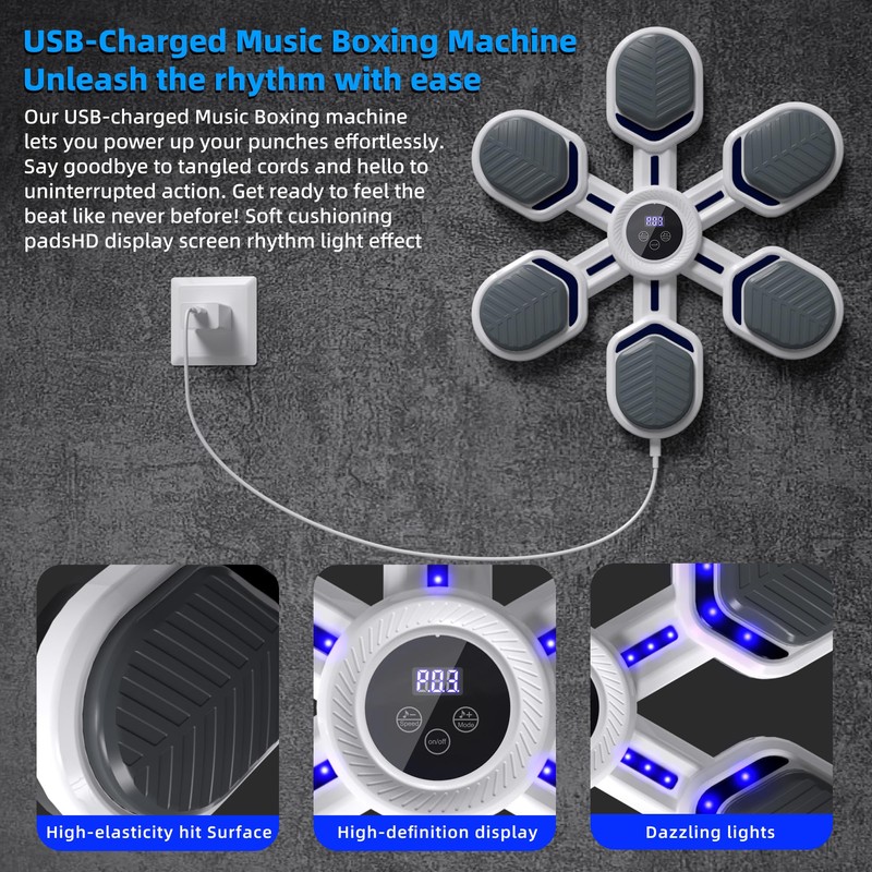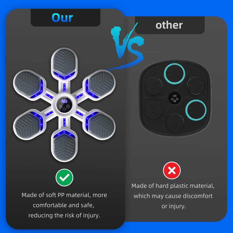 - 𝗦𝗮𝗳𝗲𝘁𝘆 𝗮𝗻𝗱 𝗖𝗼𝗺𝗳𝗼𝗿𝘁:Crafted with high-elastic foam material, our smart music boxing machine machine's impact surface ensures maximum shock absorption, safeguarding your hands during intense training sessions. The sleek design not only adds a touch of style to your space but also facilitates easy cleaning, making maintenance a breeze