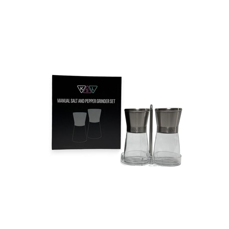 KSL Original Manual Glass Salt and Pepper Shakers Set - Stainless Steel Salt Shaker and Pepper Shaker – Amazing Gift for any Kitchen