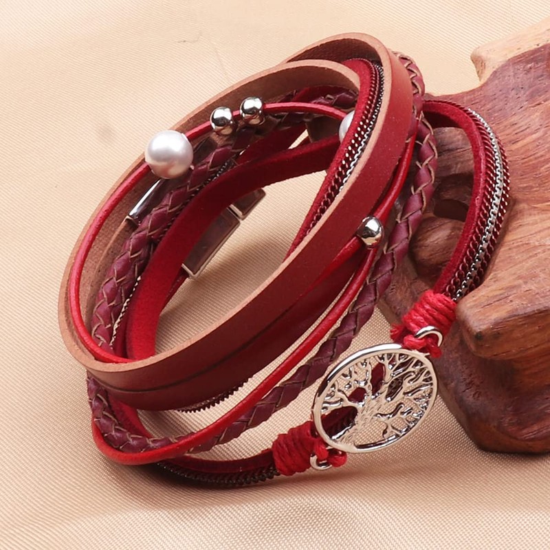 - KSQS Bohemia tree of life multilayer wide leather cuff is comfortable to wear. No fading, no pungent smell, super strong magnetic closure, no worry about it coming off. This women leather bracelet measures approximately 15"(38.5cm) long with width about 0.6"(1.5cm), Double-layer surround design,bring you an amazing comfortable fit.