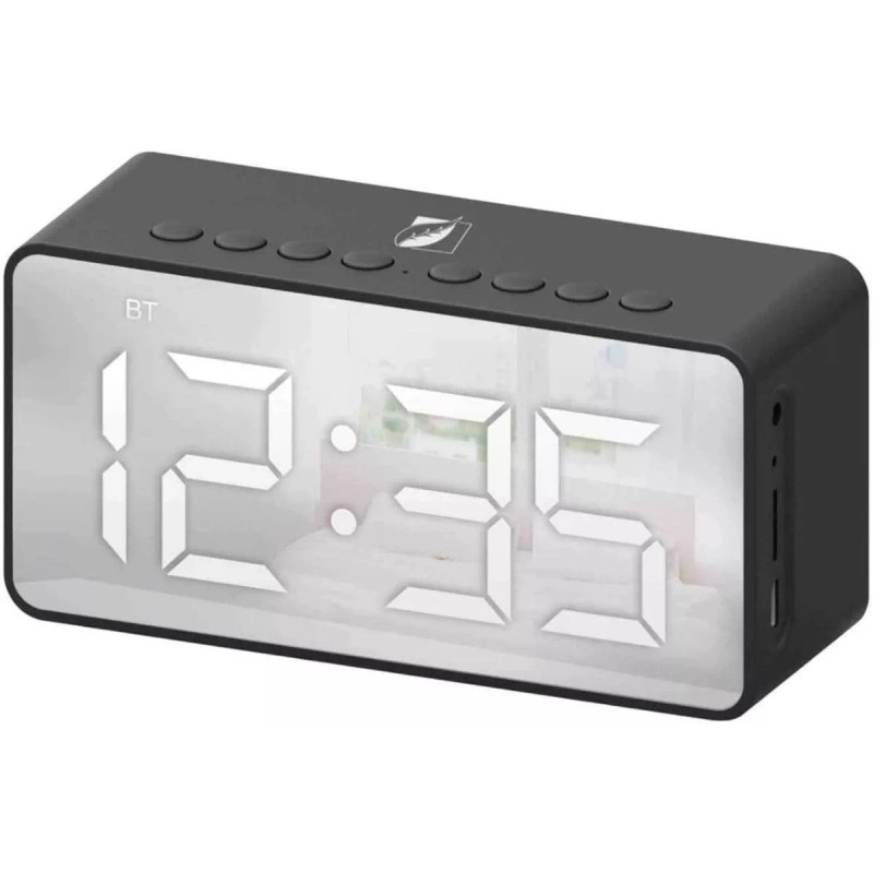 su reloj y alarma son programables para que tengas el control completo, cuenta con manos libres para contestar llamadas y radio FM, cinco horas de reproducción continua