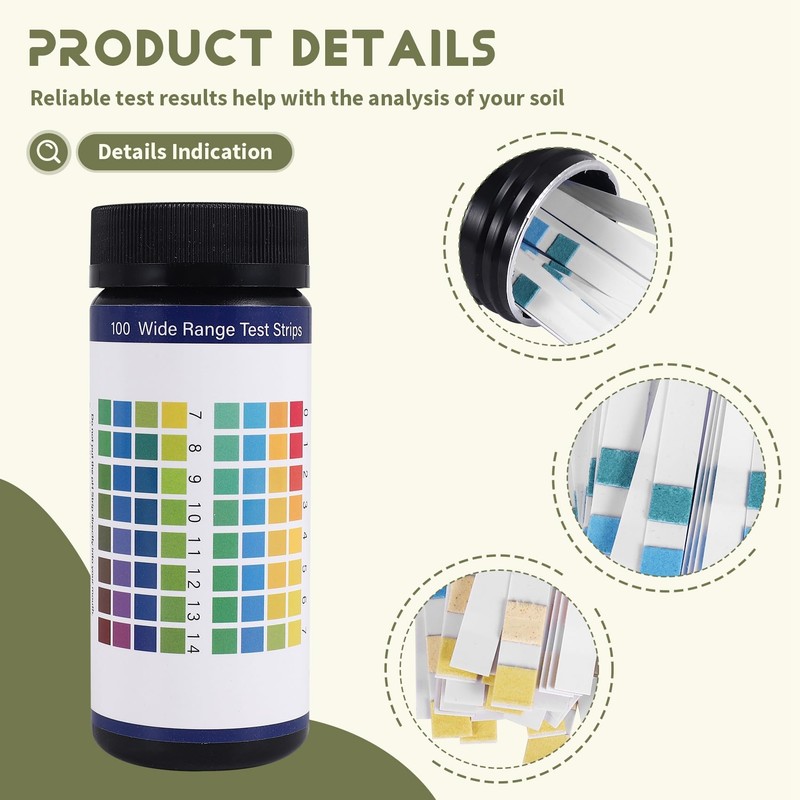 Ksrnsne Soil PH Test Strips 100 Strips Soil Tester 0-14 PH Soil Test, Soil PH Test Strips, Plant Tester for Soil, PH Test Strips