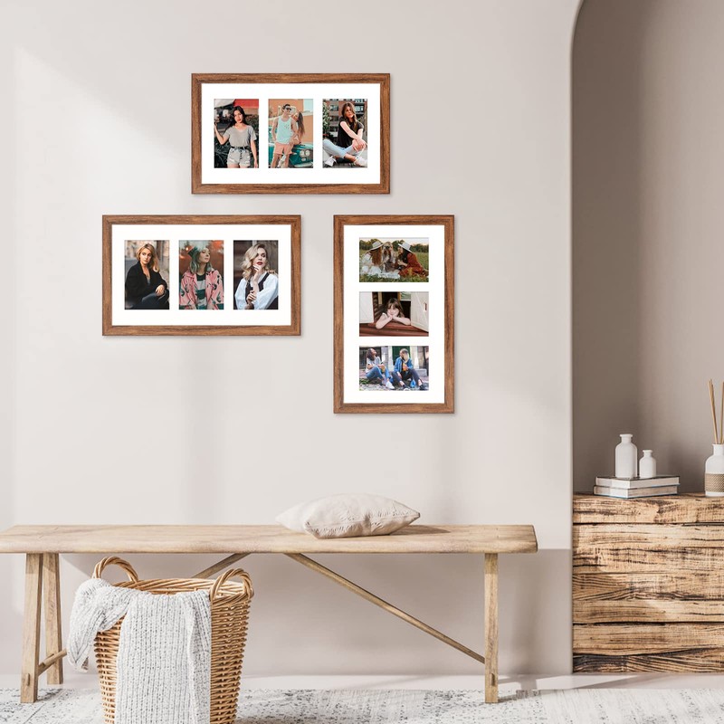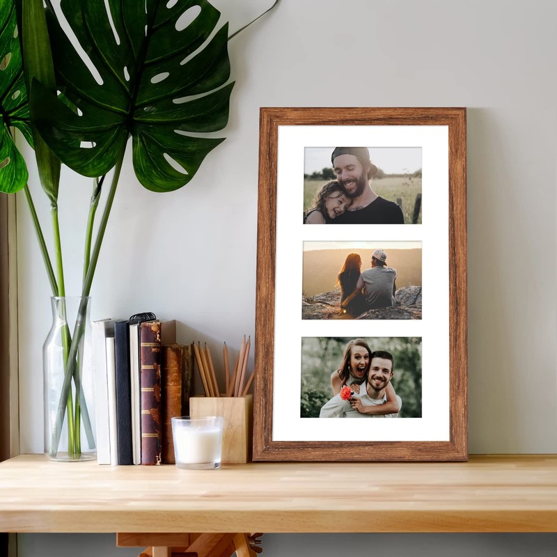 KSROECUD 11.8x21.8 Collage frame with 8 Openings 4X6 Pictures, Multiple Picture Frame with Mat, Wall or Tabletop Decor, Carbonized Brown Wood Grain,2 Pack