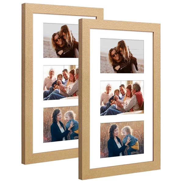 KSROECUD 8x14 Collage frame with 3 Openings 4X6 Pictures, Multiple Picture Frame with Mat, Wall or Tabletop Decor, Natural Wood Grain,2 Pack