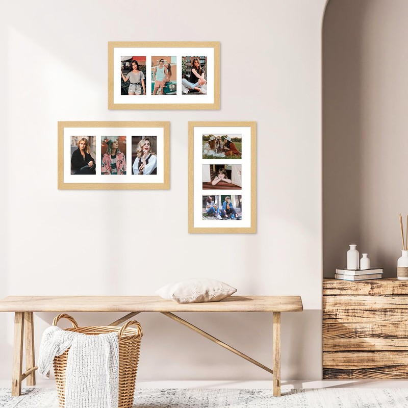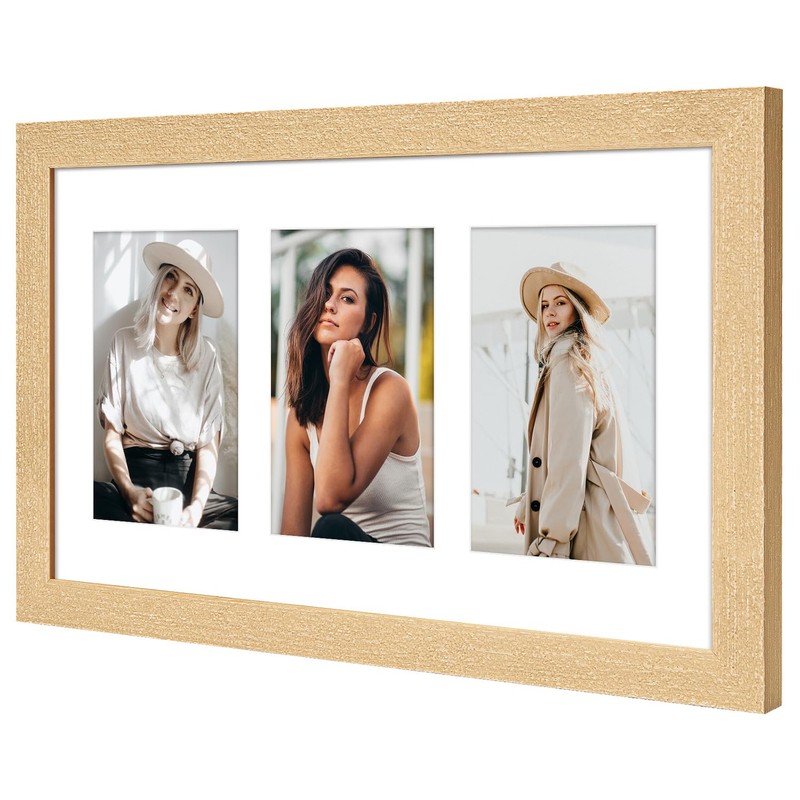 KSROECUD 8x14 Collage frame with 3 Openings 4X6 Pictures, Multiple Picture Frame with Mat, Wall or Tabletop Decor, Natural Wood Grain,2 Pack